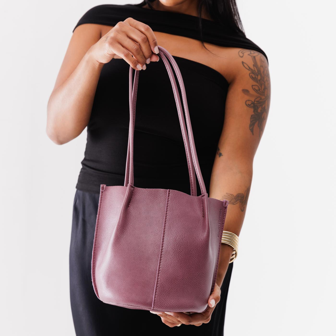 - Dual shoulder straps in supple full-grain leather