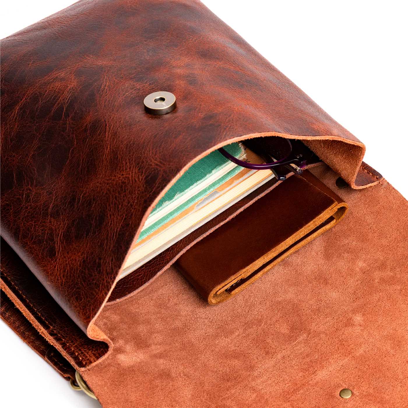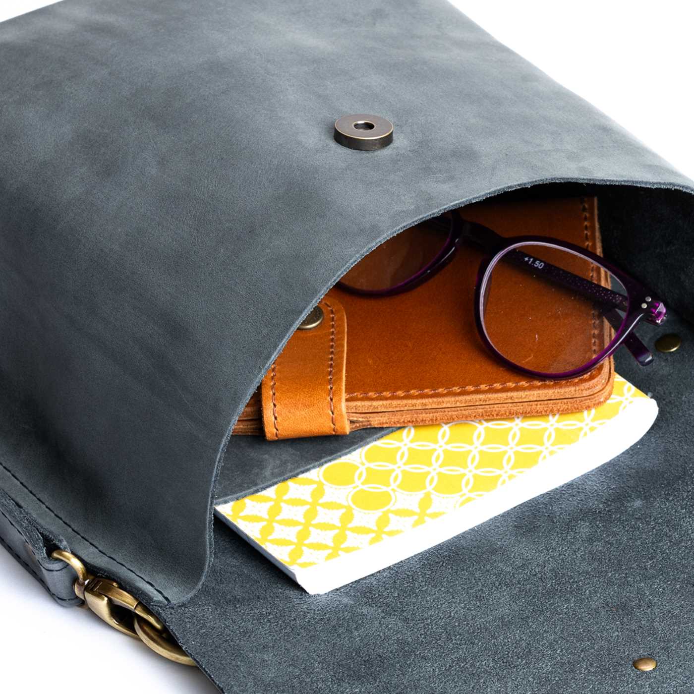 Our durable leather goods are unlined, featuring the natural suede side of the hide. Since fabric-lined bags inevitably discolor and tear with use, we chose to showcase the soft sueded underside of our hides, ensuring that your bag lasts a lifetime.