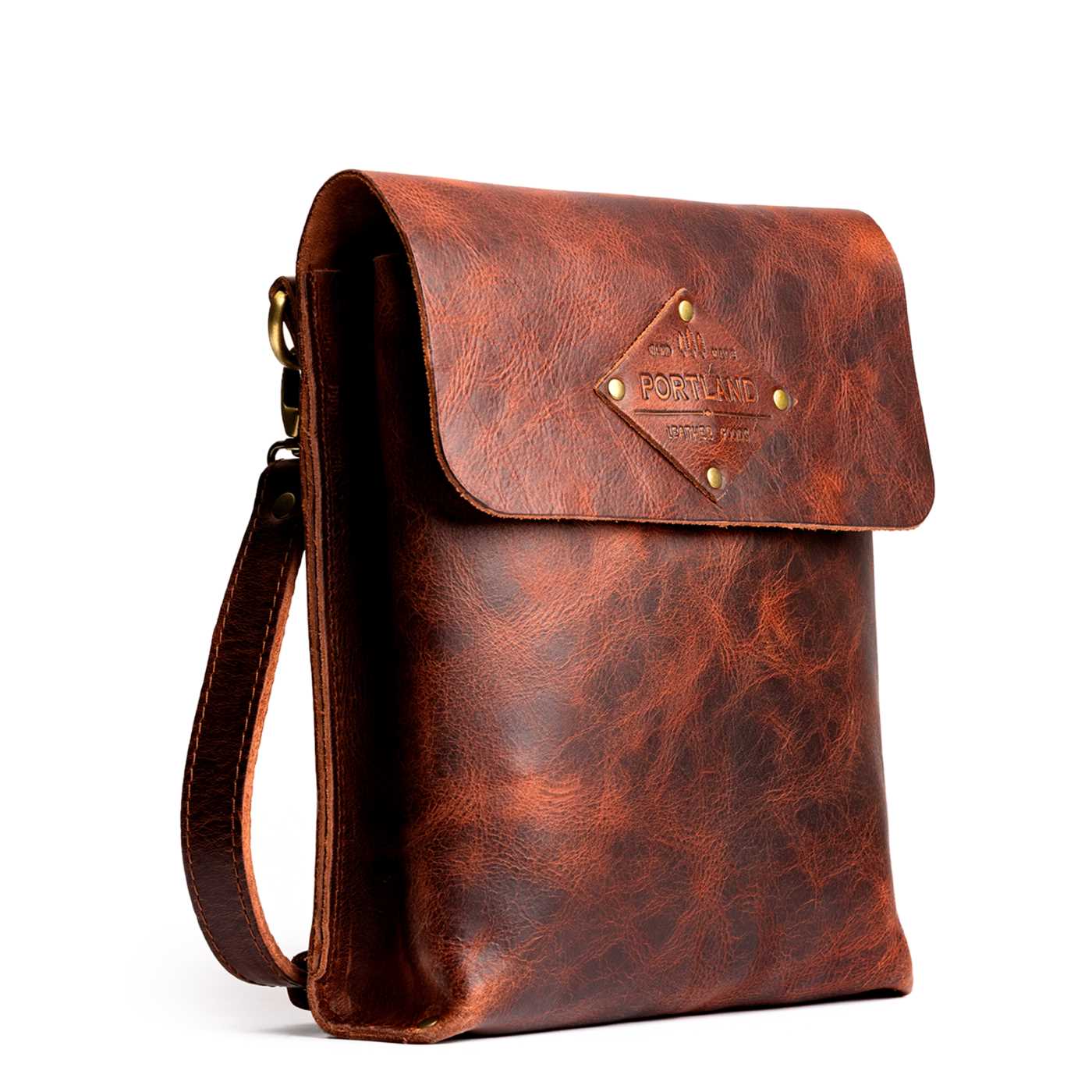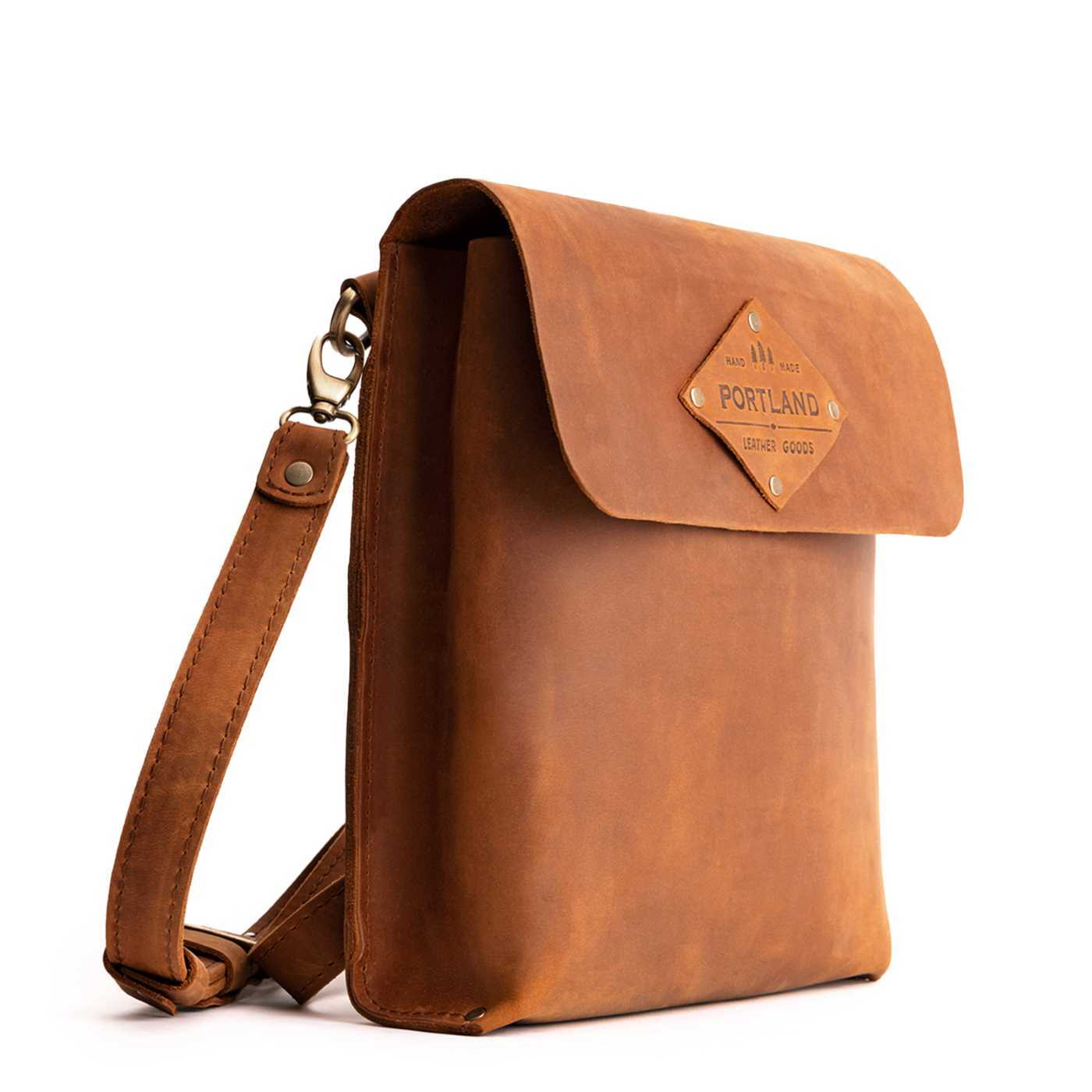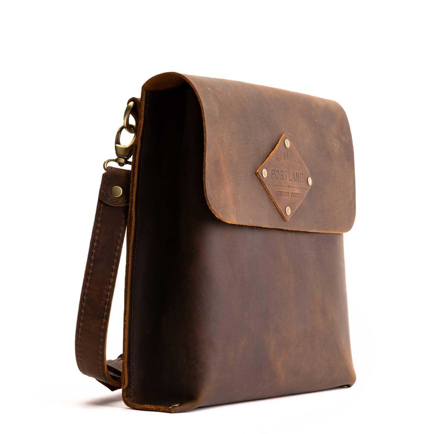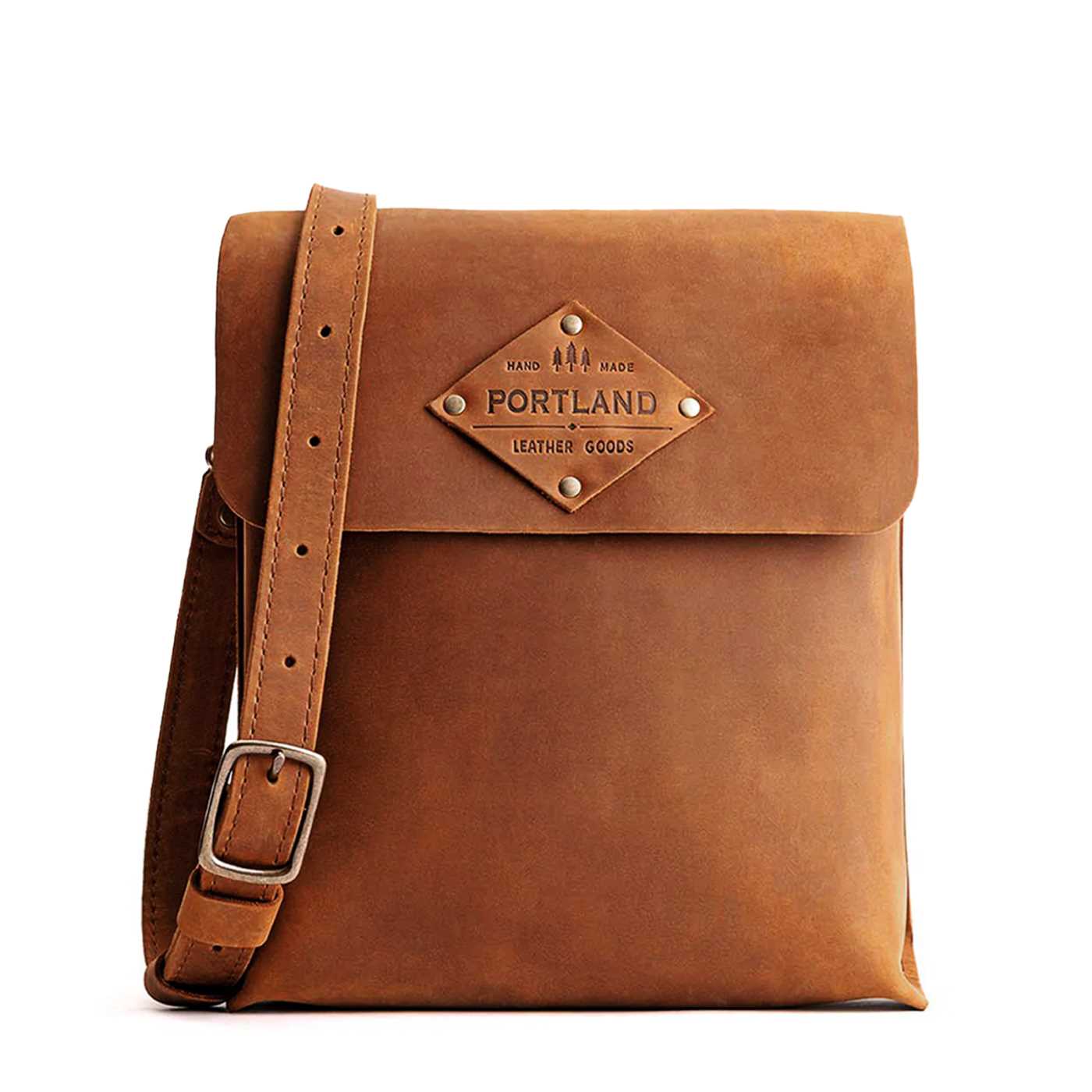 - Sturdy, flap-style carry-all made from our toughest full-grain leathers
