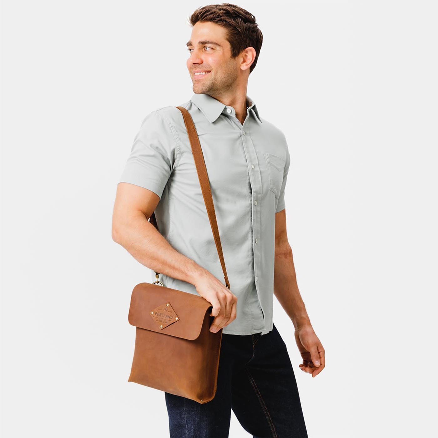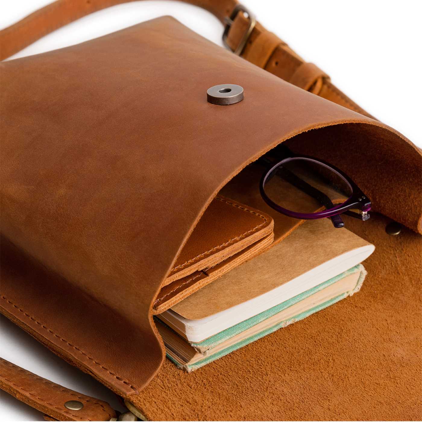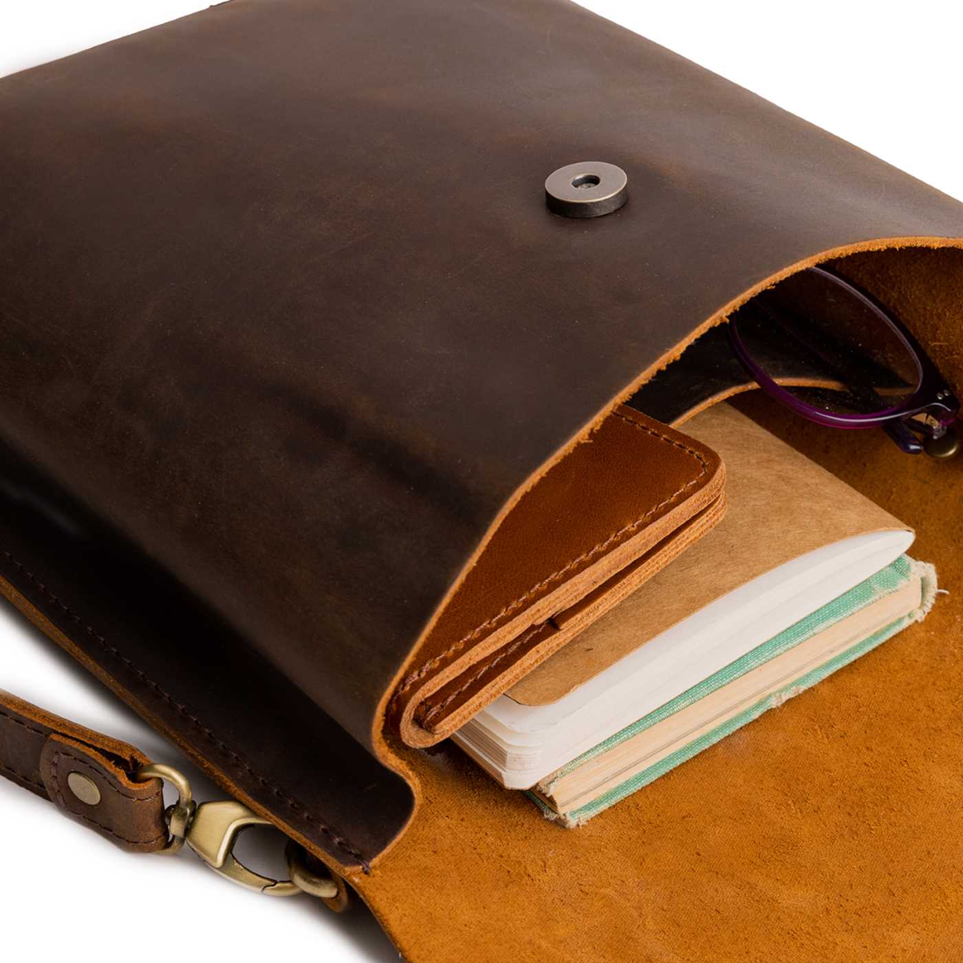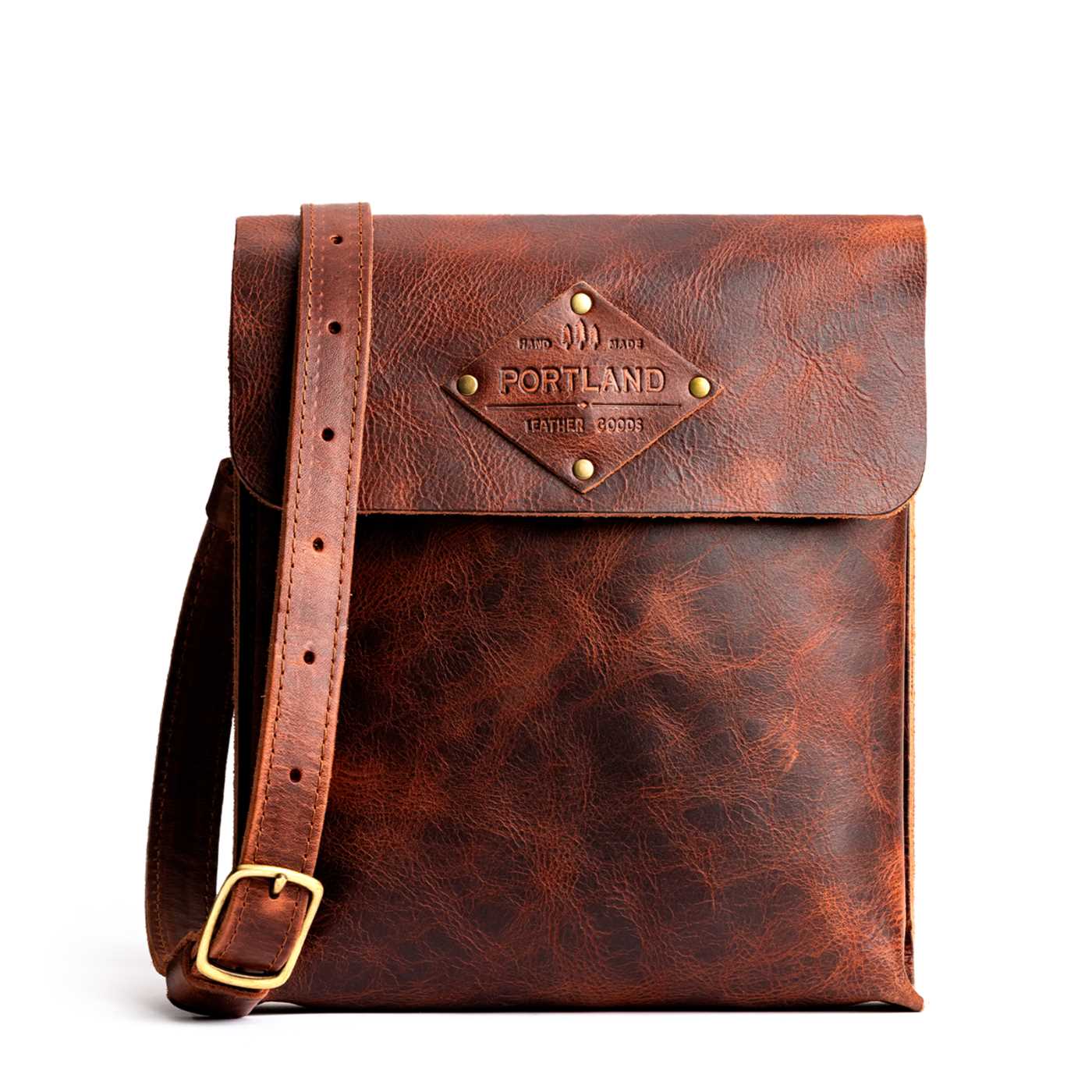 - Sturdy, flap-style carry-all made from our toughest full-grain leathers