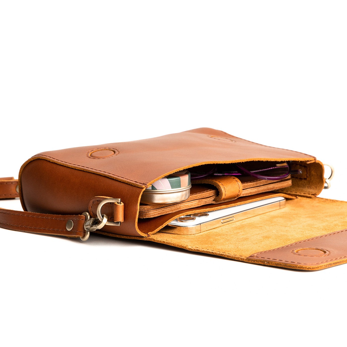 - Features a hidden magnet closure and interior pocket