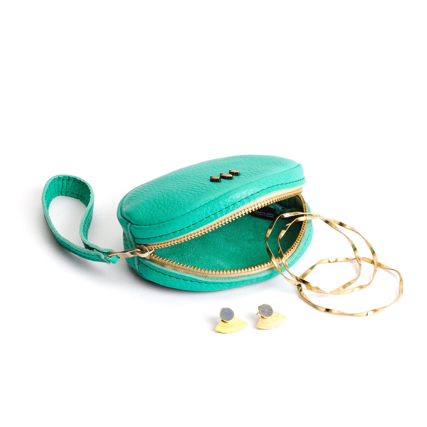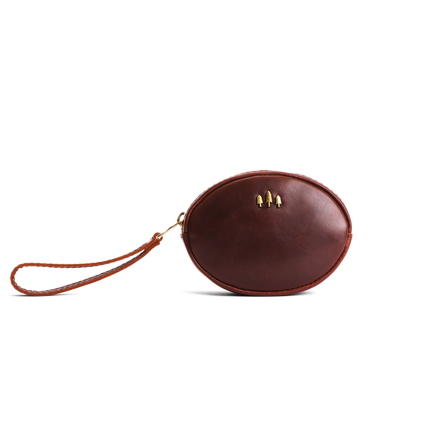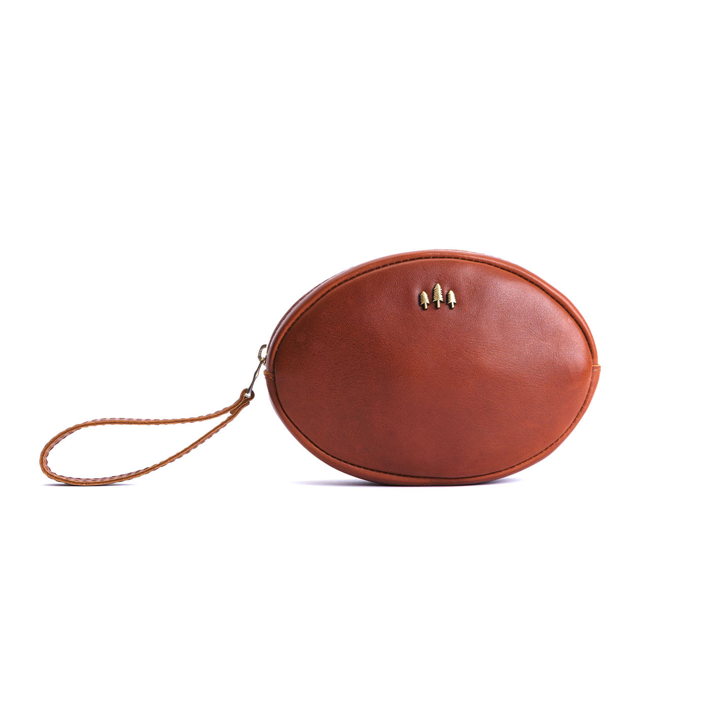 - Antiqued brass-finished Portland Leather tree emblem