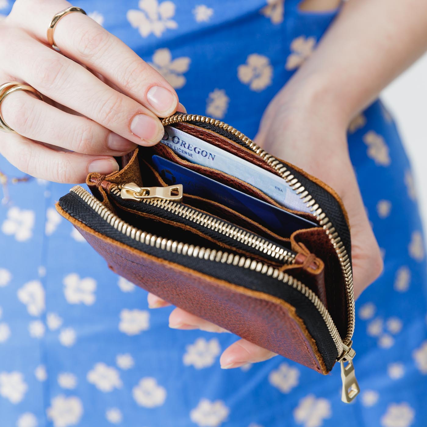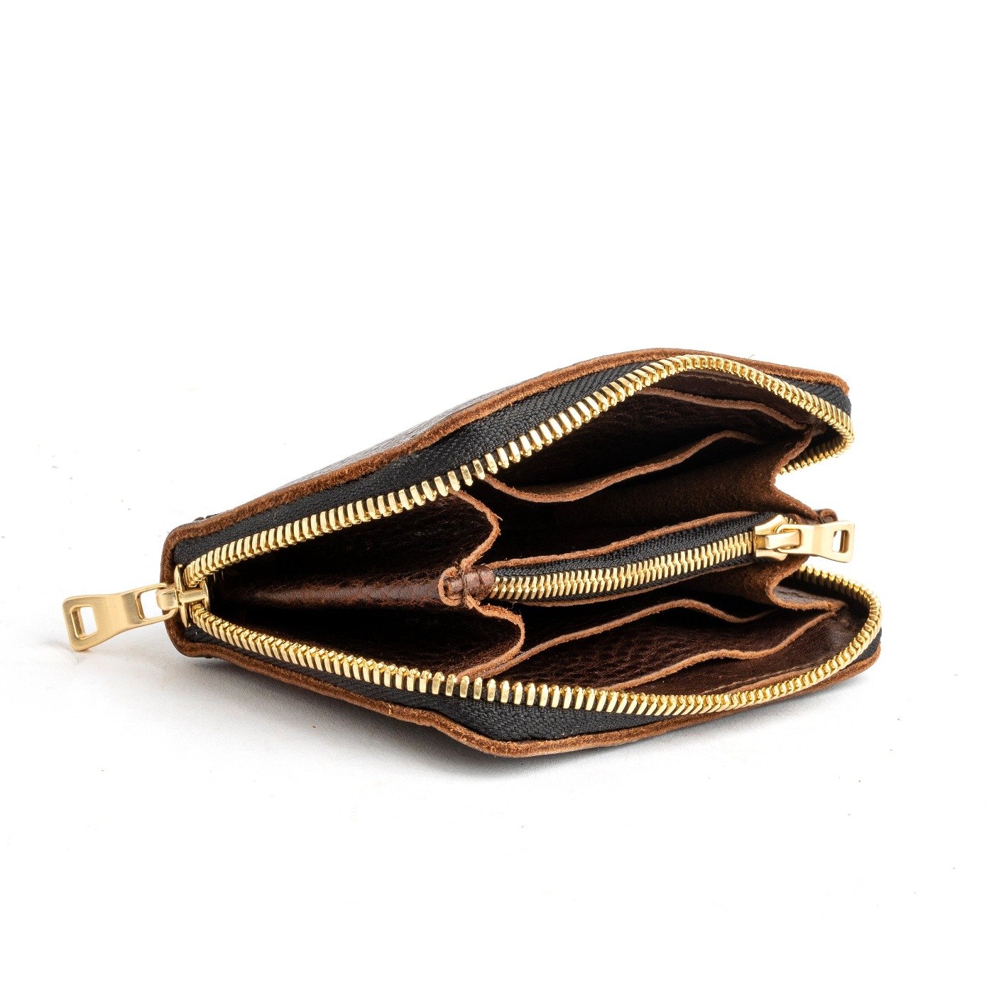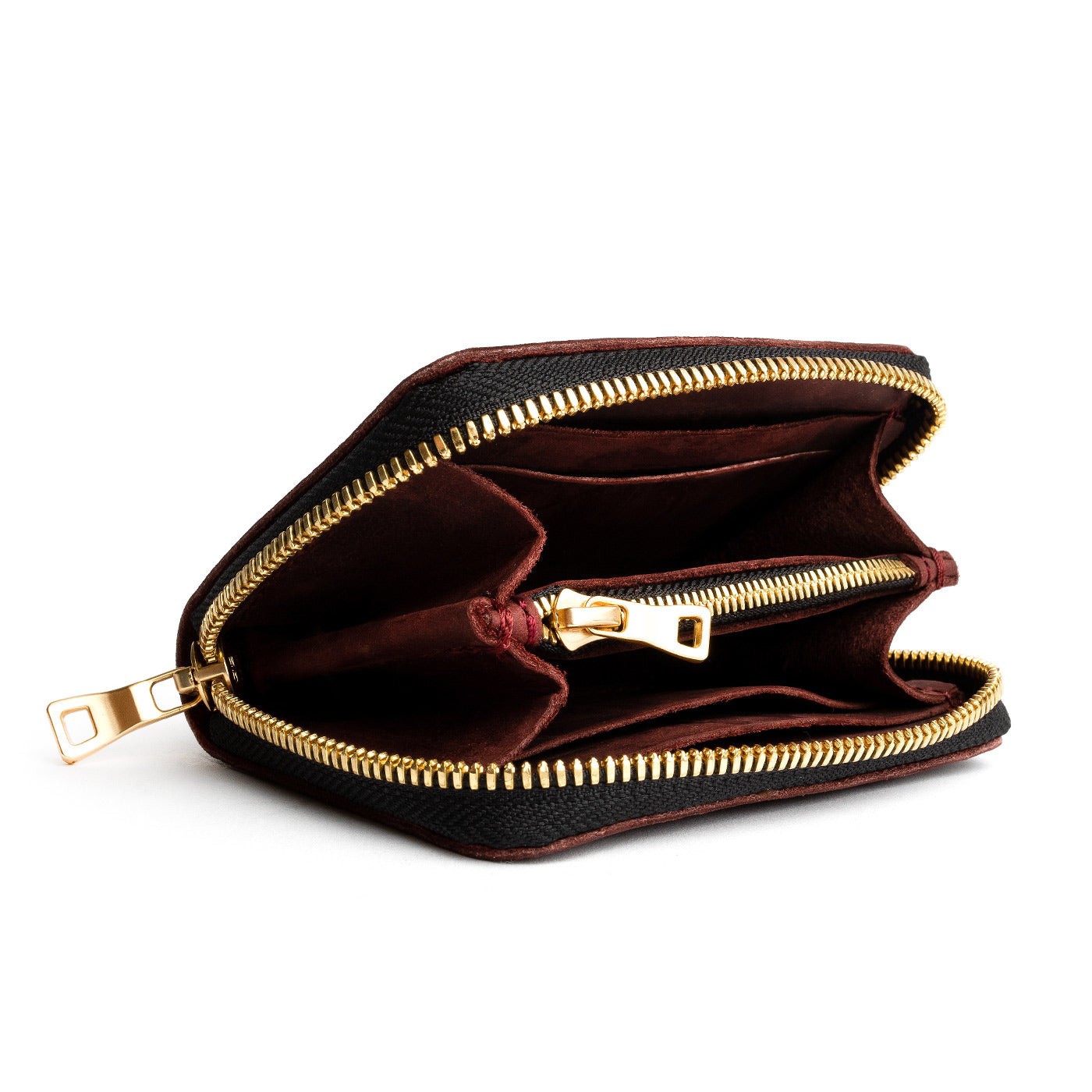 - 4 card slots, 2 large pockets for cash, and a zippered coin pocket
