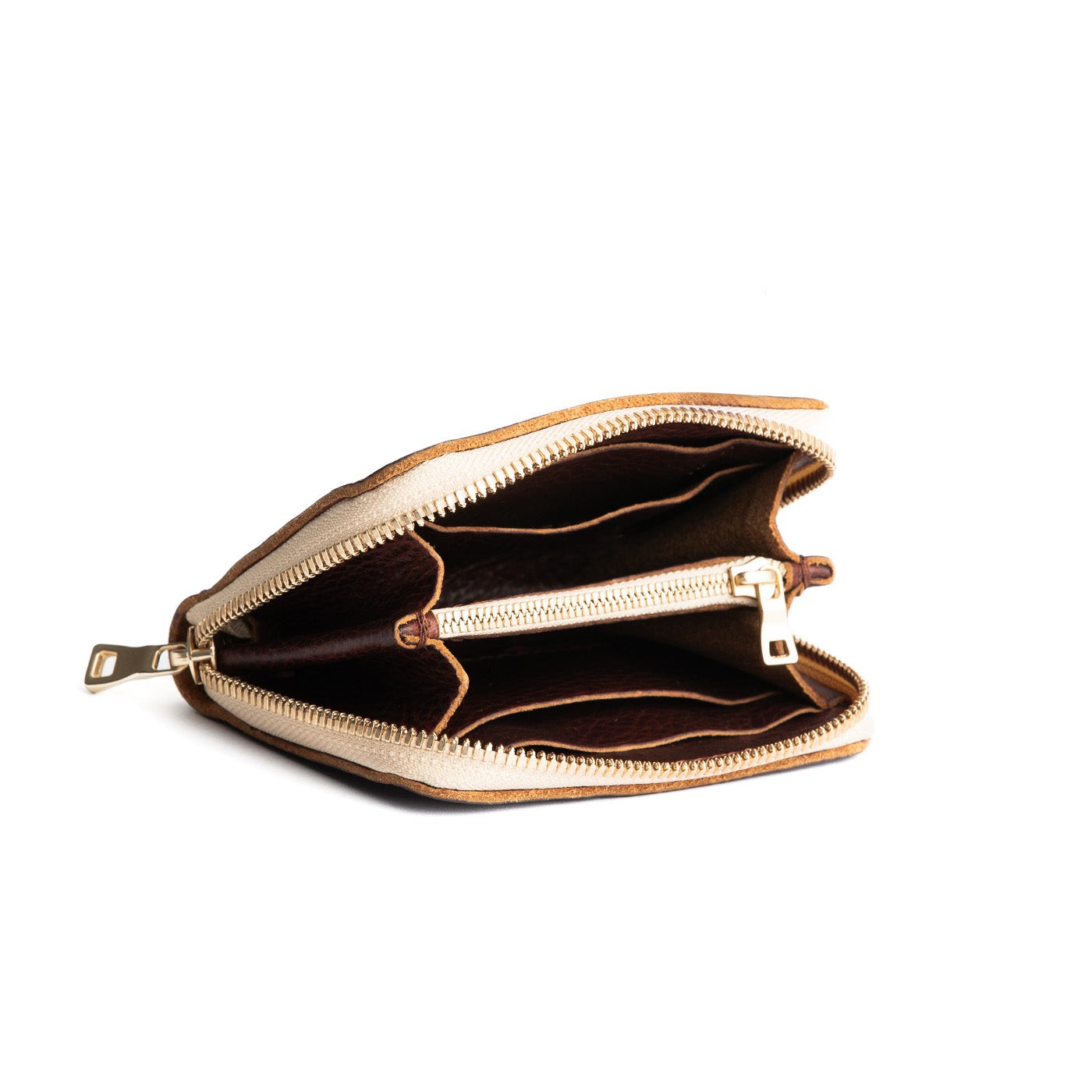 - Smooth gliding, brushed brass zipper