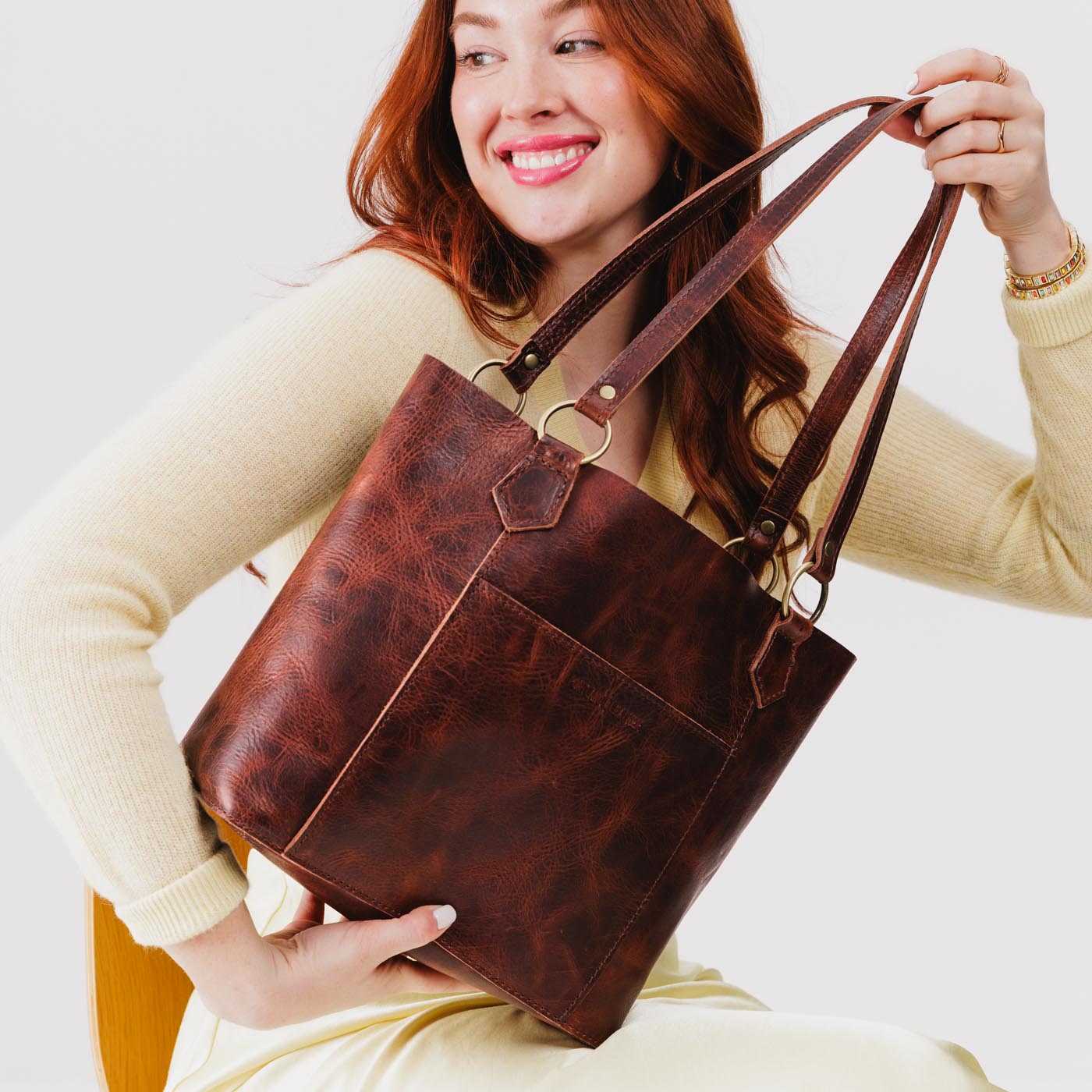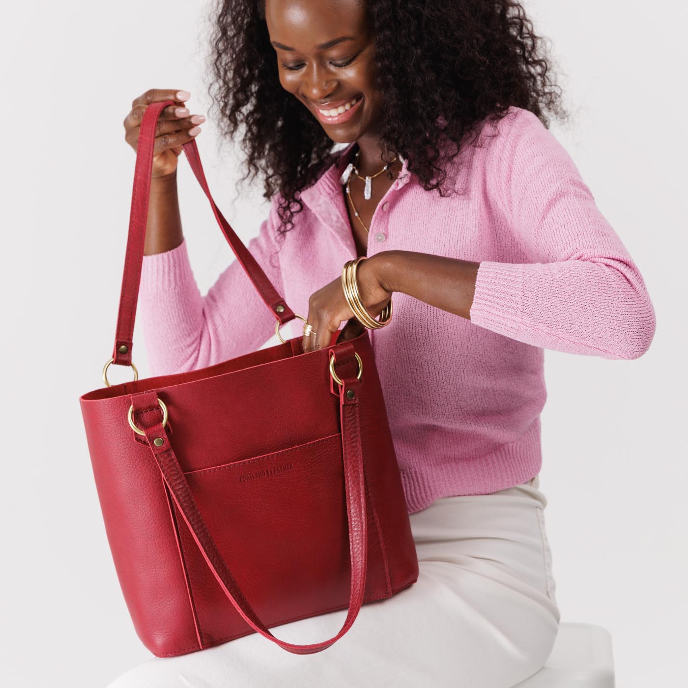 - Brass ring hardware, perfect for attaching tassels and keyrings