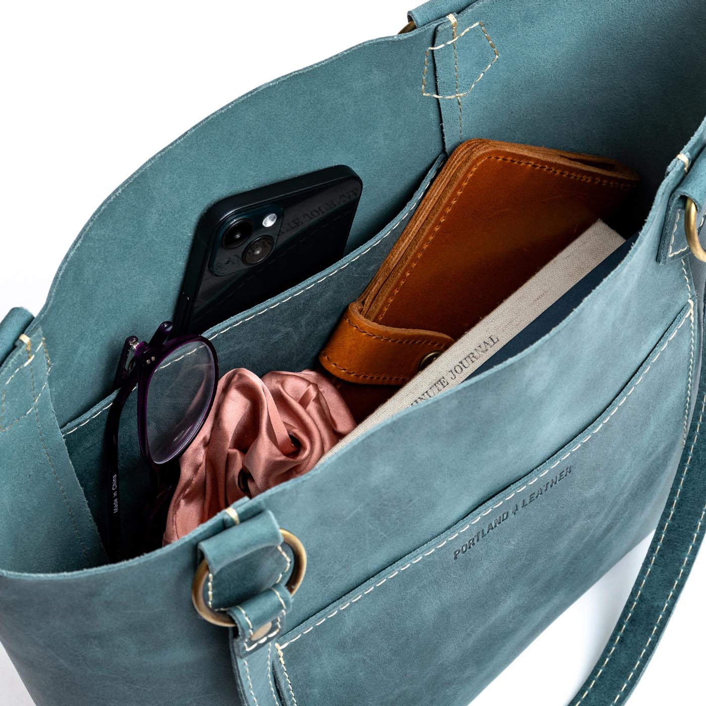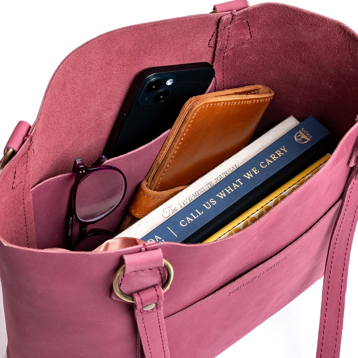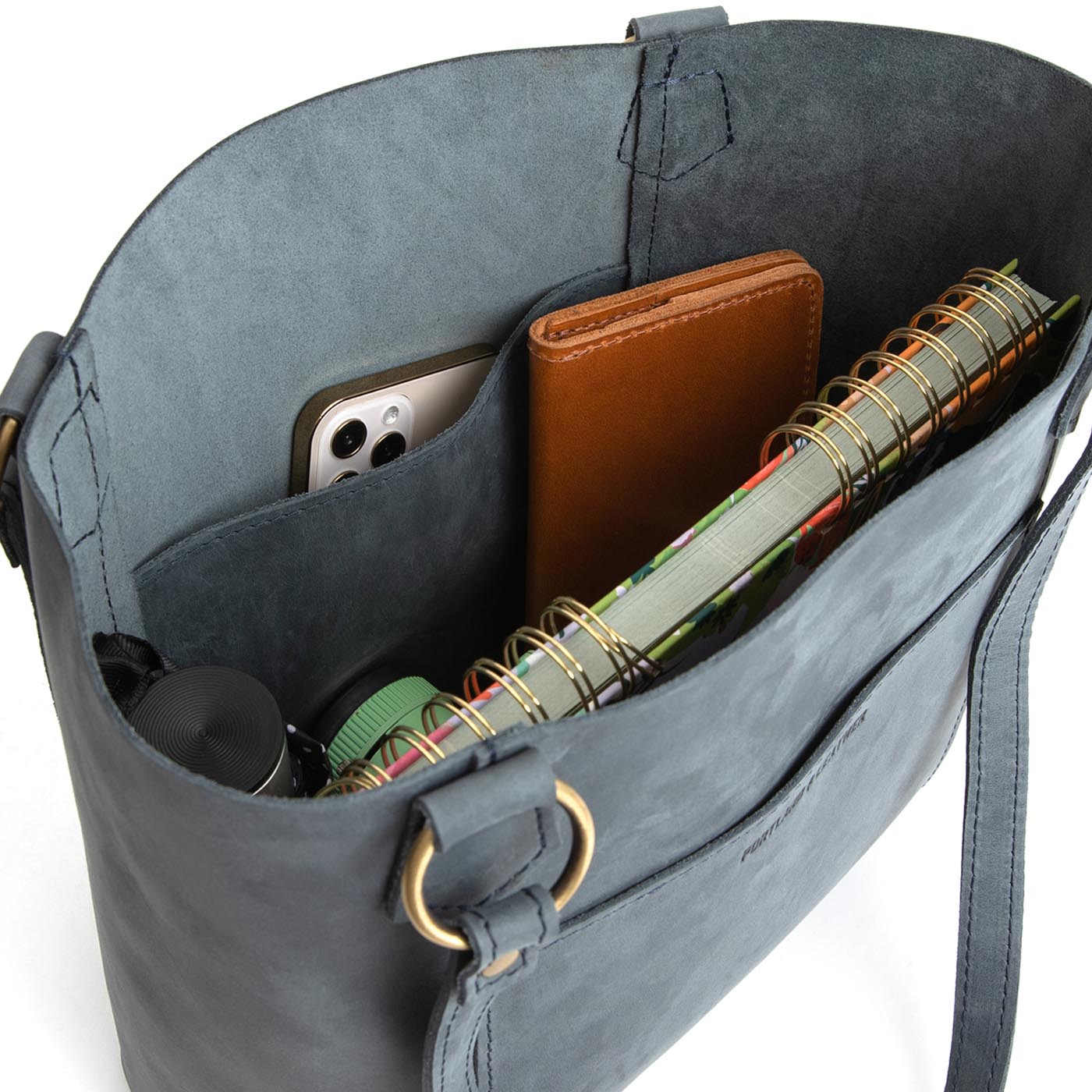 Our durable leather goods are unlined, featuring the natural suede side of the hide. Since fabric-lined bags inevitably discolor and tear with use, we chose to showcase the soft sueded underside of our hides, ensuring that your bag lasts a lifetime.