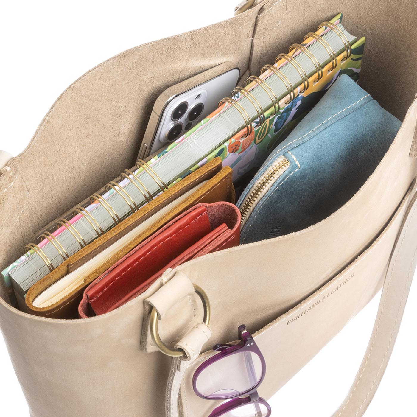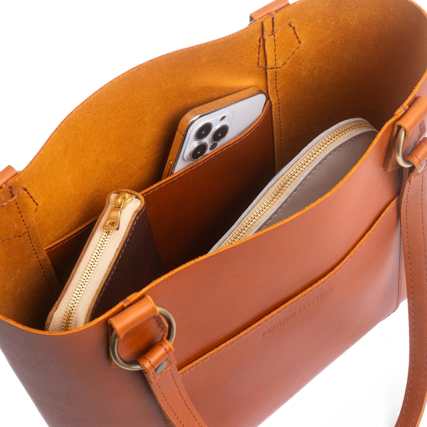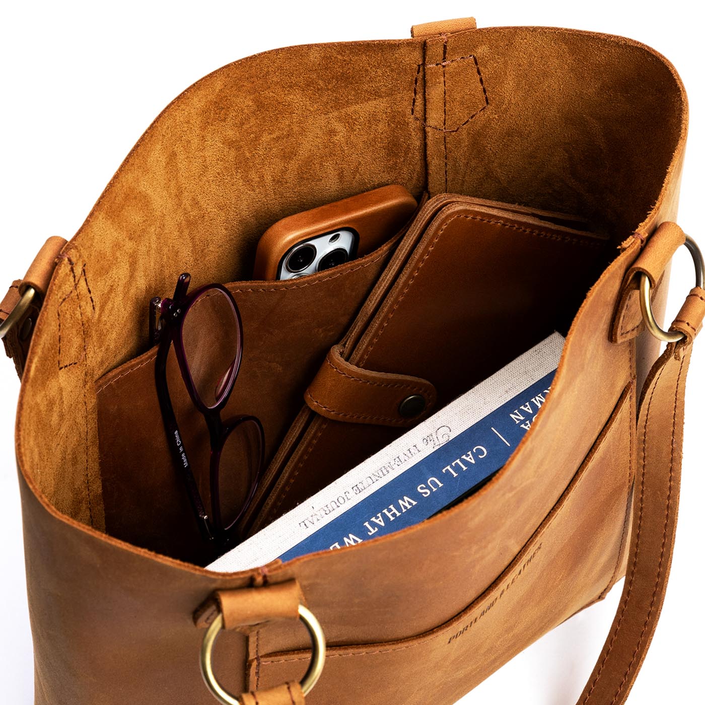 Our durable leather goods are unlined, featuring the natural suede side of the hide. Since fabric-lined bags inevitably discolor and tear with use, we chose to showcase the soft sueded underside of our hides, ensuring that your bag lasts a lifetime.