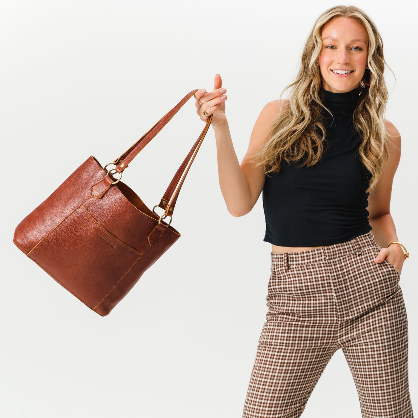 - Elevated seam work and leather tab details fit for any occasion